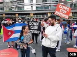 Cubanos se manifestaron este lunes frente a la sede del gobierno canadiense, en el City Hall de Toronto, en apoyo al levantamiento popular que movilizó a miles de sus compatriotas este domingo en varias ciudades de la isla.